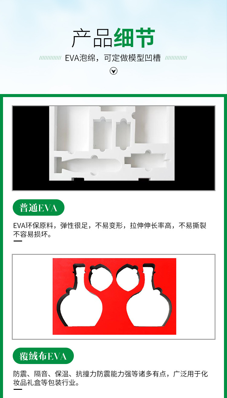 五周泡绵专业生产CNC雕刻EVA包装工具盒内衬 红酒瓶eva内托 酒水止损减震运输植绒eva内衬