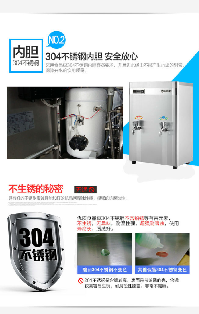 4、工作效率免去了不断更换桶装水的麻烦;无需专人去搬运、监管桶装水;水龙头较多、供水量大,减少等待时间;温开水(水烧开后降温)可直接饮用,比喝开水省时间。