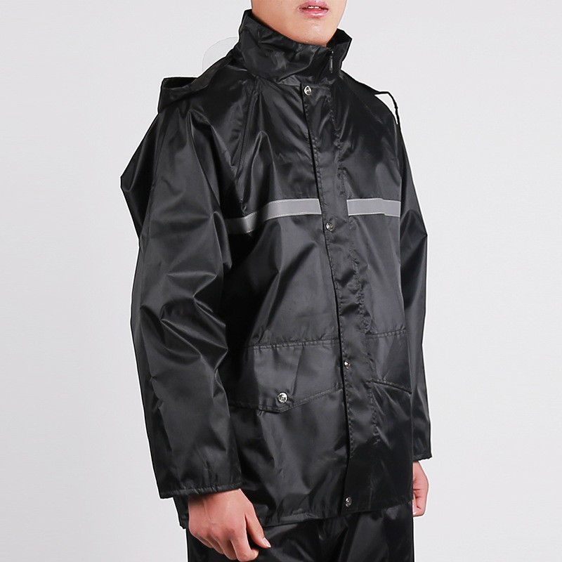 本产品为分体双层套装雨衣,包括上衣、裤子。上衣为双门襟休闲款式;双层设计,有里衬;裤子是松紧带裤腰,双层设计(裤档以上部分有里衬),休闲款式;适合交通、电业** 户外作业 钓鱼 骑**电动车自行车等1行业