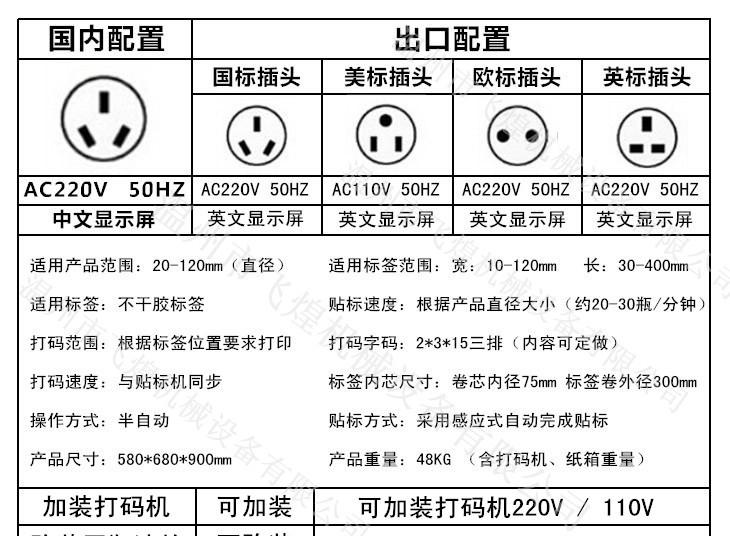 1.适用类型:圆瓶、圆罐、圆筒等不干胶贴标