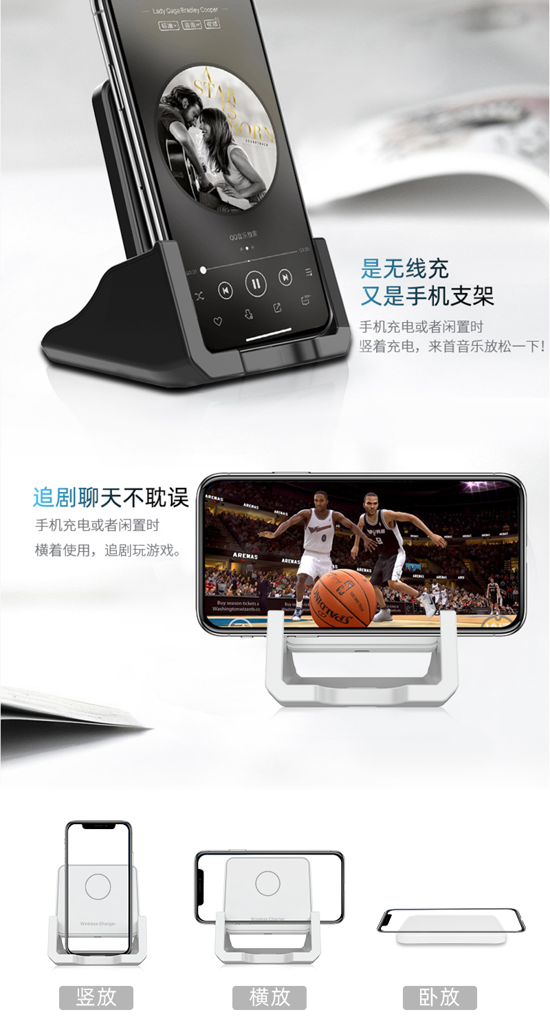 千方宝黑色无线充电器手机支架新款私模无线充电器立式手机支架快速10w方形桌面适用苹果华为三星千方宝无线充