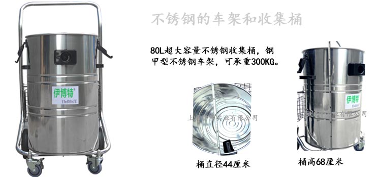 A 车架与集尘桶采用不锈钢制造,承重能力可达300KG以上。