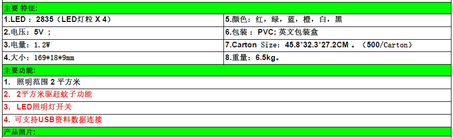 JW086心率手环(108元/台) JW018心率手环(128元/台) USB LED驱蚊灯(9.8元/支)