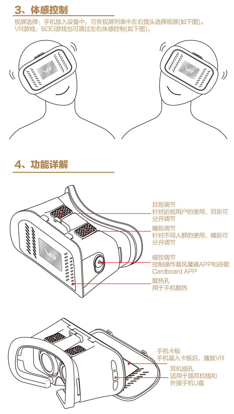 六、手机放入更加便捷,左右屏幕更加居中。支持3.5-6寸手机放入,小手机也可以观影。