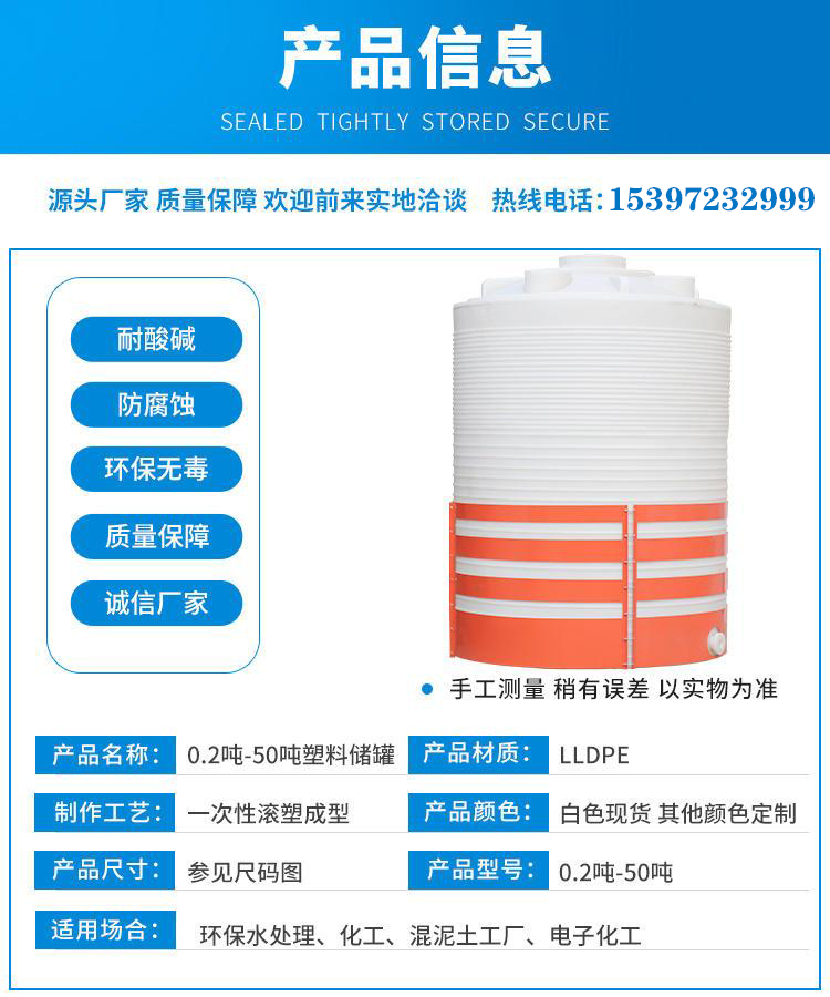 | 材质 : | LLDPE韩国产线性低密度聚乙烯商混复配罐 | 用途 : | 高性能减水剂塑料桶复配罐,聚 储罐,聚乙烯水罐,聚乙烯储水罐,储罐,储水桶,pe水箱,防腐贮罐,耐酸碱储槽等 |