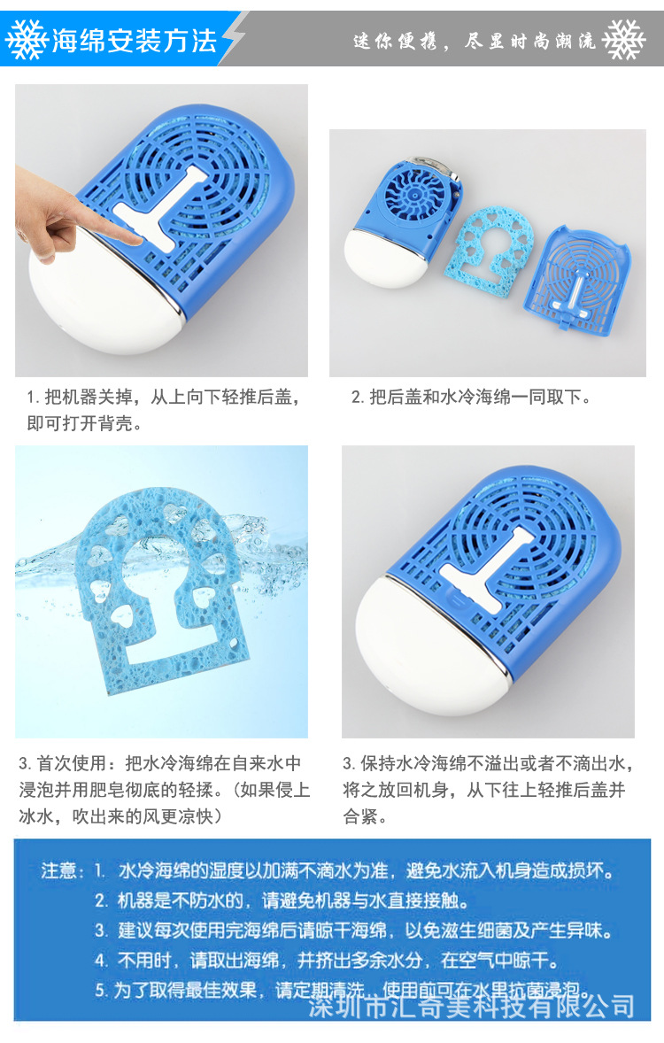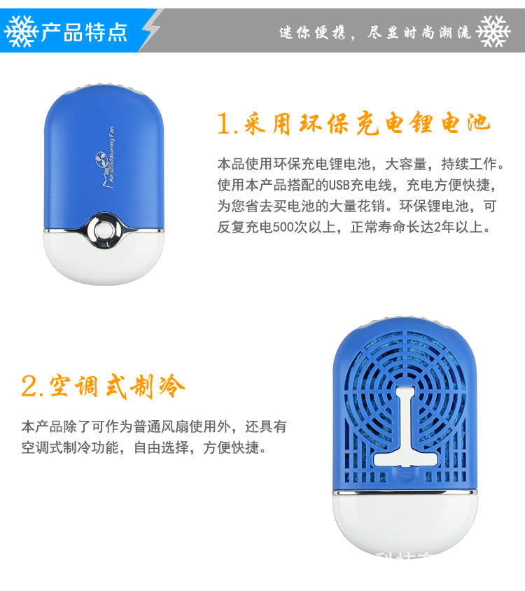 说它是迷你风扇,它确实是一款迷你的风扇,与传统的硕大、笨重的普通风扇相比,迷你掌上空调风扇更显得小巧、可爱。不管是放置桌面,还是随身携带,都是极其方便。