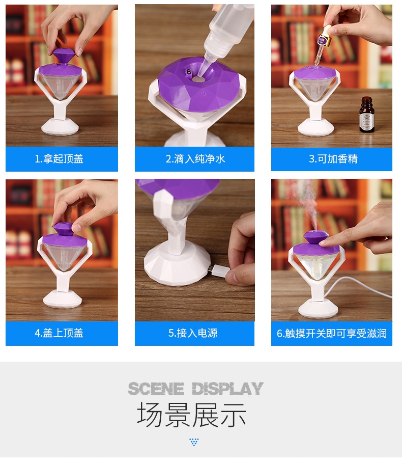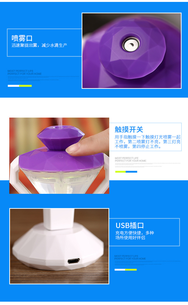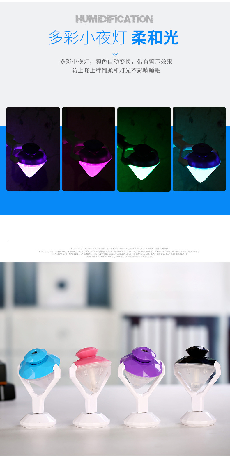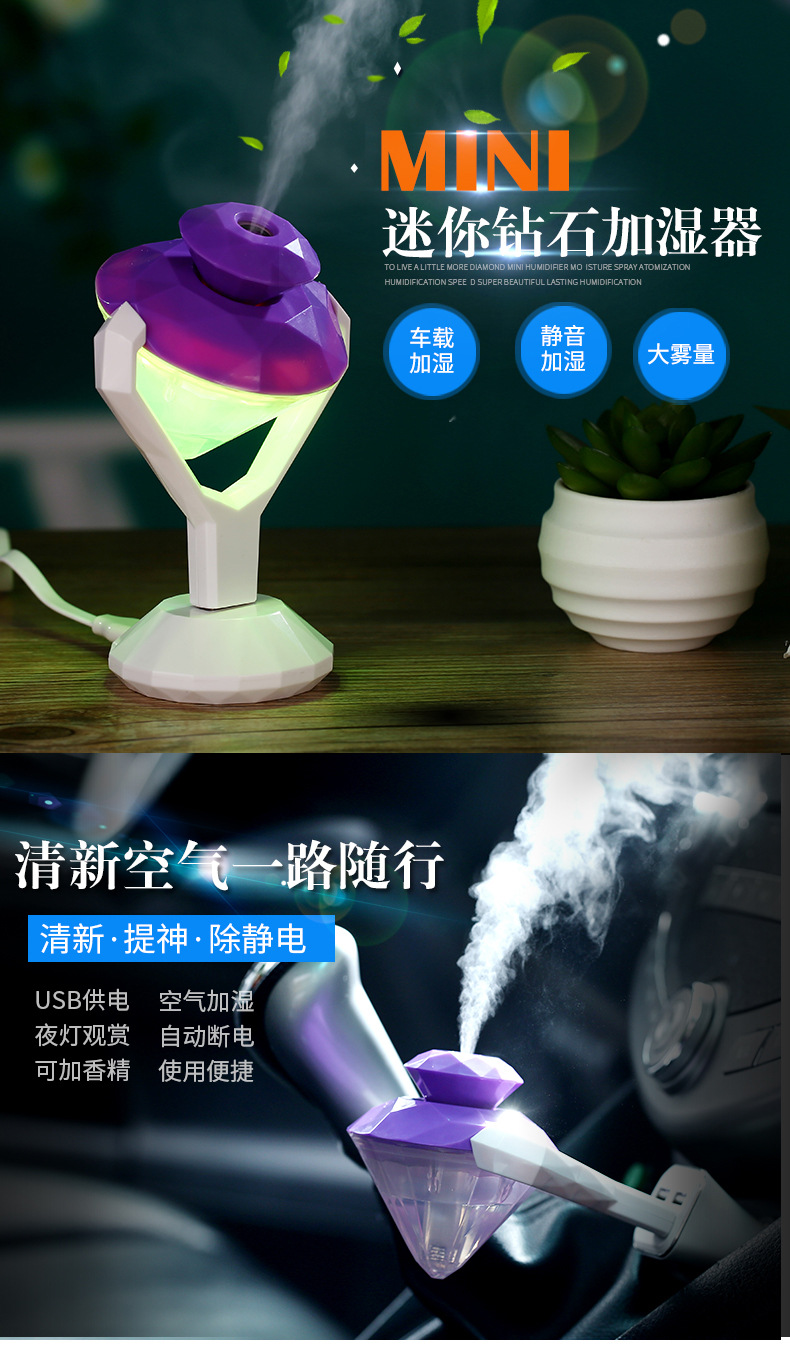 新款钻石加湿器 夜灯加湿器 家用USB、车载两用