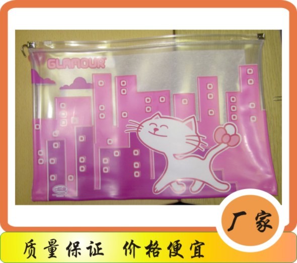 PVC袋描述:PVC有普通透明、超透明、环保低毒、环保无毒料(6P不含邻苯二甲酸酯)和磨砂面。PVC袋广泛用于礼品袋,文具.内衣和毛线,床上用品还有袜子等促销物品。环保,安全卫生,耐用且美观,使用非常方便。可印刷图案,产品介绍和公司名称等一些标志。