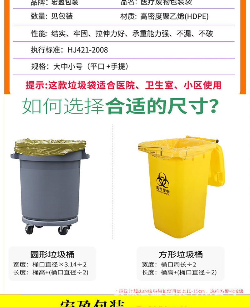 【供应】宏盈 厂家批发黄色医疗垃圾袋医院废物平口袋加厚新料一次手提式垃圾袋 厂家供销 的推广海报