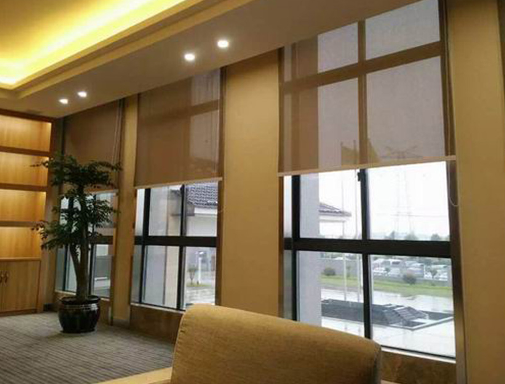 电动卷帘安装于室内或双层玻璃间,避免外界的不利影响,提高了系统的使用寿命。夏季可遮挡阳光,并降低空调负荷,冬季可调节视觉舒适度。如使用无线电遥控或楼宇智能控制,可实现各种智能控制方式,满足用户高品质要求。电动卷帘可采用"一拖多"的形式,在机构中增加平衡器或万向节,使一个电机同时拖动多副面料。当电机运转时,多块面料一起作升降运动,以达到更好遮光和遮阳的效果。在降低机构的故障率和减少工程费用的方面的优越性也十分突出。在现代化智能大厦中,电动卷帘的控制系统还可以与大楼的控制中心对接,方便实现远距离规模化的集中控制。