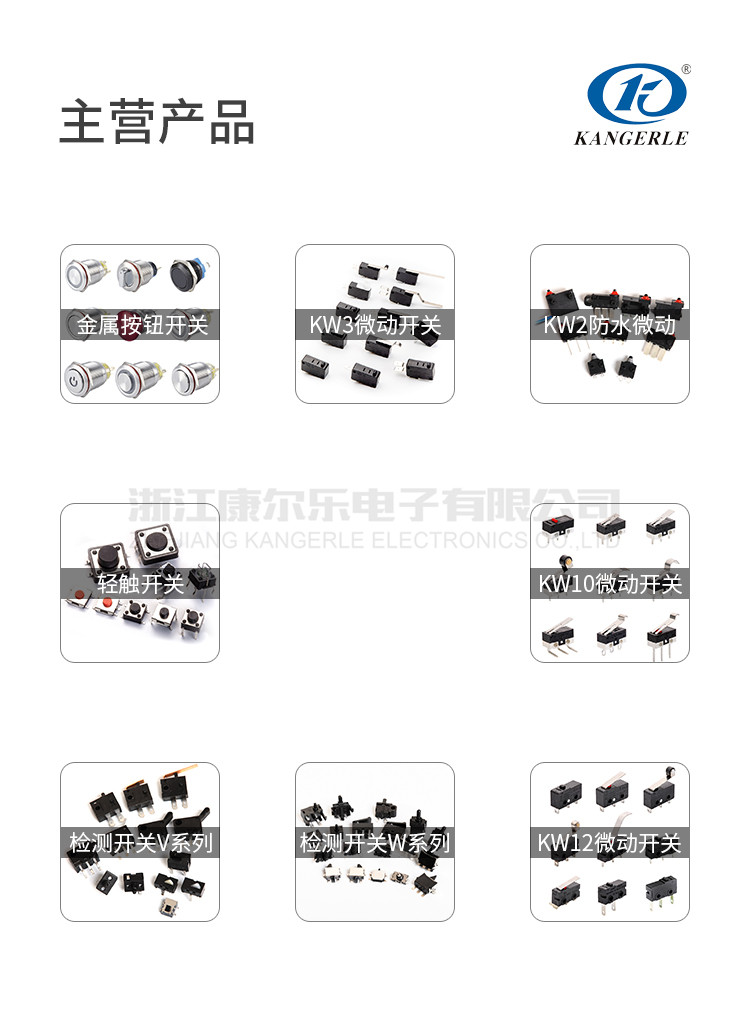 主营:微动开关,防水微动开关,小微动开关,检测开关,限位开关,轻触开关,拨动开关,船型开关,按钮开关,金属按钮开