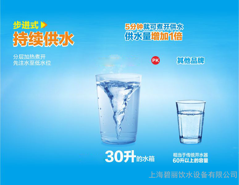4、工作效率免去了不断更换桶装水的麻烦;无需专人去搬运、监管桶装水;水龙头较多、供水量大,减少等待时间;温开水(水烧开后降温)可直接饮用,比喝开水省时间。