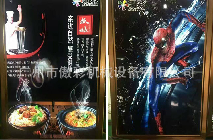 广州市傲彩机械设备有限公司润彩牌UV平板打印机不受任何材料限制,可以在玻璃、铝塑板、木板、扣板、吊顶、有机板、陶瓷、波纹板、泡沫板、金属板、塑料、织物、墙纸、砖、石等硬性材质表面进行彩色照片打印。不单是简单的块**案,全彩**案或是具有过度色的图案,都能一次打印完成,应用领域非常广泛,操作简单、效益理想,是您投资创业的理想伙伴。