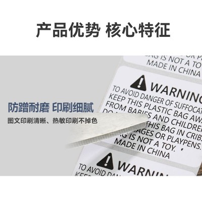 亚马逊防窒息标签塑料袋警示语warning不干胶贴纸窒息警 告标签纸