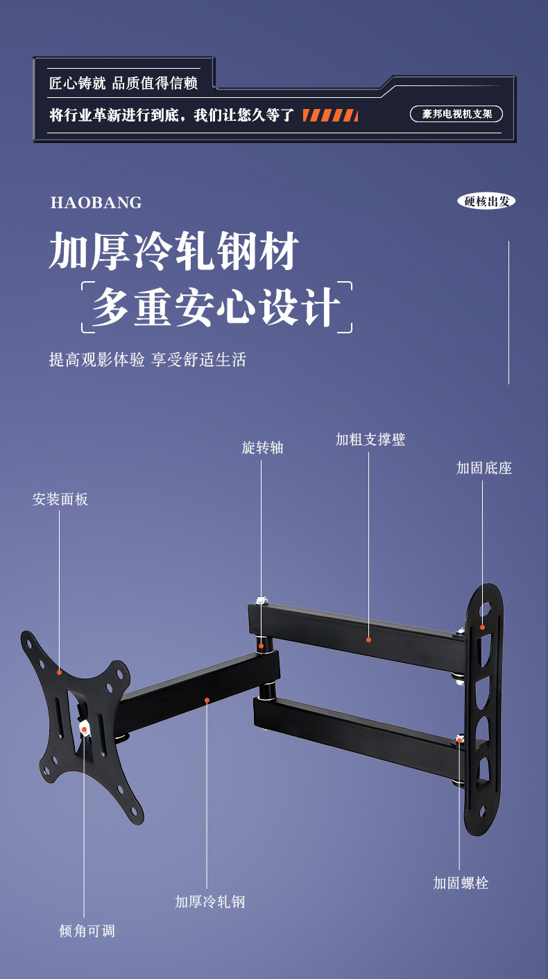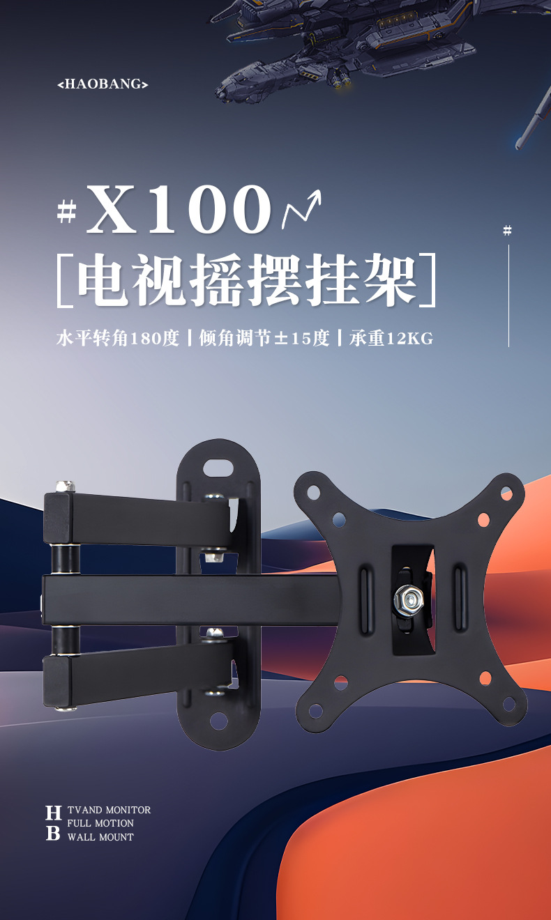 x100显示器伸缩挂架液晶电视机支架14-26寸电视墙面旋转摇摆挂架