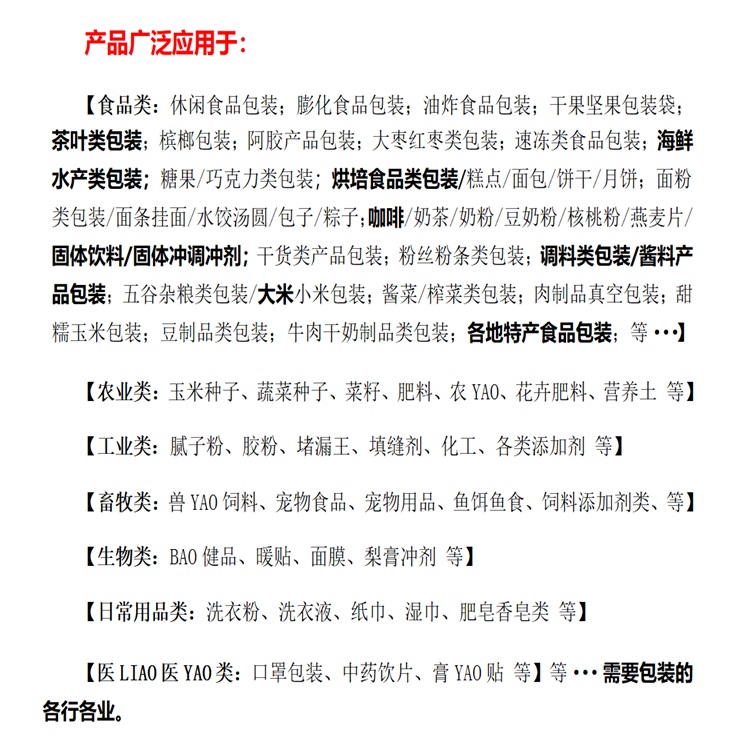 定做包装袋,食品包装袋,真空包装袋,铝箔包装袋,高温蒸煮包装袋,大米包装袋,调味品包装袋,日用品包装袋,宠物食品包装袋,兽药包装袋