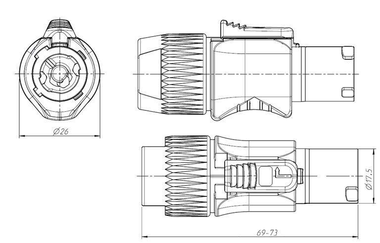 可锁20 A / 250 V ac设备耦合器 线性,不带电和预制接地三种触点 电源输入(蓝色)与电源输出(灰色)带有不同的锁键以避免短路 快速便利的扭转锁定系统 人体工程学的设计 人性化的锁闩设计提供简易的操作 纽曲克电源产品高清图