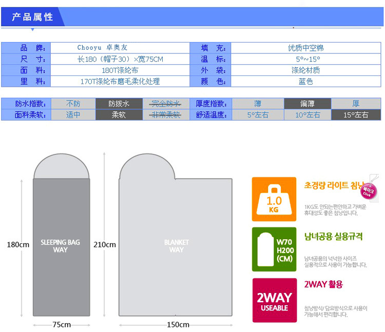 【规 格】 袋长180CM,帽长30CM,总宽75CM