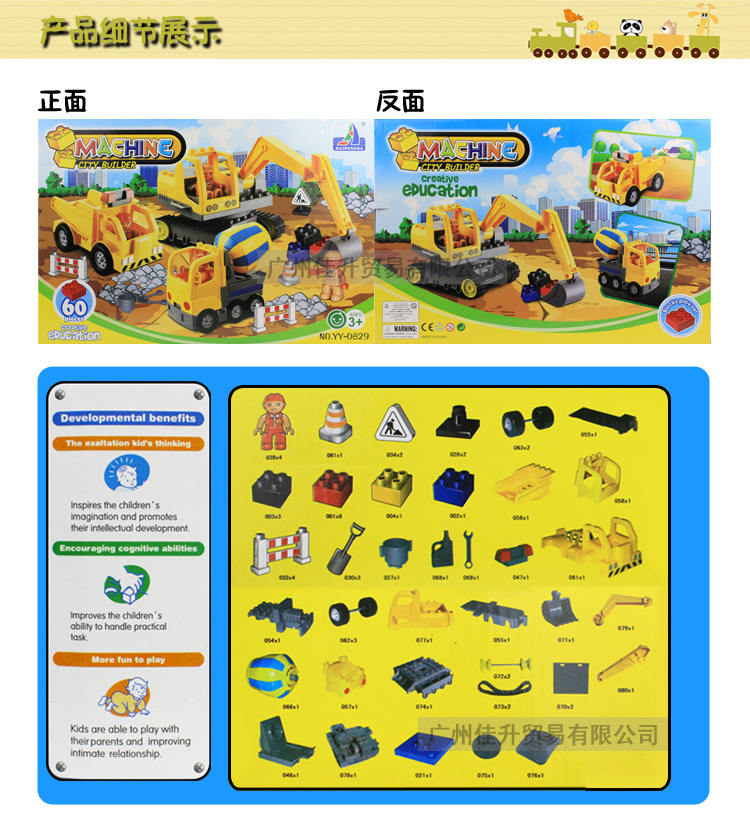 研究表明,孩子是天生的学习者。各种形状的积木块、积木颗粒,可以进行各种构造活动。如用积木搭建房屋、公园,用积塑片插接家具、车辆等。在构造活动中,爸爸妈妈可以有意识地发展宝宝的语言。构建前,可先帮助宝宝构思,让宝宝说出要构造的物体。构造完成后,还可以让宝宝给父母讲一讲自己建构物体的过程和方法。这样既可提高宝宝的口语表达能力,又可促进宝宝思维水平的提高,引发宝宝对游戏的兴趣,一举数得。玩具是孩子最喜欢且不可缺的工具。所以说:积木,世界上最巧妙的玩具,所有的积木中,尤其以乐高式积木为最经典,它靠孩子自己的想象力,动手能力和创造力将各种凸孔积木的拼插组合,能够创造出无穷多的造型,甚至可以模拟出一切事物的模型,令人爱不释手,被称为“魔术塑料积木”。乐高式积木让孩子在娱乐中提供了无限的创造空间,能够激发所有年龄孩子的热情,不论男孩女孩都喜欢,一年四季都可以玩。而综合运用不同的凸孔积木共同组建实物造型,有利于孩子精细动作能力,想象力和创造力的培养。而且积木拼插是一种具有难度性,创新性的玩具,通过拼插可锻炼孩子的专注、认真、耐心等向上的性格,当孩子遇到关卡时,您也可以加入到他的时间当引导者,这时就可以好好享受您和孩子的亲子时光了!