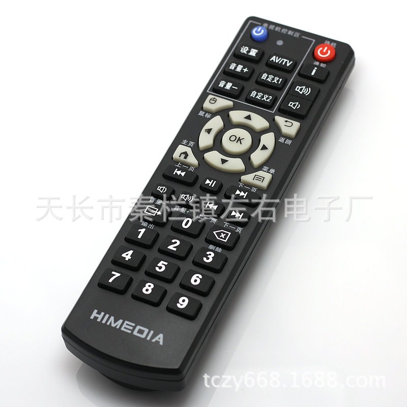 学习型**遥控器:**+电视机二合一; 具有4个可学习键,分别为电视机常用的开关机、音量+、音量-、AV/TV切换按键; 学习能力强,学习成功率达99%以上; 学习的键是可以重复学习,新的学习信号可以覆盖原来的学习信号,并且掉电后能**保存学习的信号; **码放置于单片机内,**丢失; 操作简单,使用方便; 产品功耗低,功能齐全,发射距离远; 外观精美,手感舒适; 大按键,手感舒适,更适合全家中老人使用. 3)学习功能使用简述. * 按电视学习区的“设置”键不放,当3秒钟,当红色指示灯长亮指示后,松开按键; * 10秒内按下本机电视机“电源”键,红色指示灯闪烁两下后长亮; * 将原始电视机遥控器与本机发射管对准,相距3CM左右,按下原始电视遥控器上的“电源”键3秒,红色指示灯快速烁几下后慢闪三下,学习成功; * 重复第2、3步学习其它按键,学习完成后按一下“设置”键,退出学习状态; * 此时可按学习好的键控制您的电视机了;