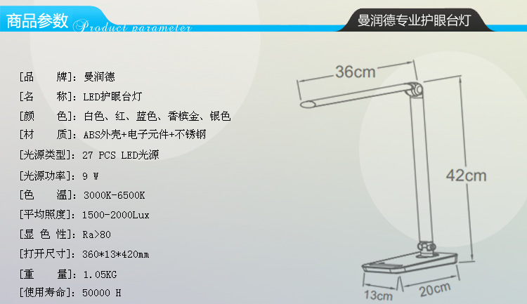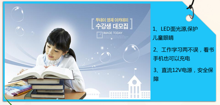 LED面光源同样功能率散热面大了几十倍,散热效果很好,护眼台灯LED寿命50000小时以上(欢迎测试);传统LED大功率光源散热面小,即使使用大量散热器也无法快速导出热量,因此光哀变快。