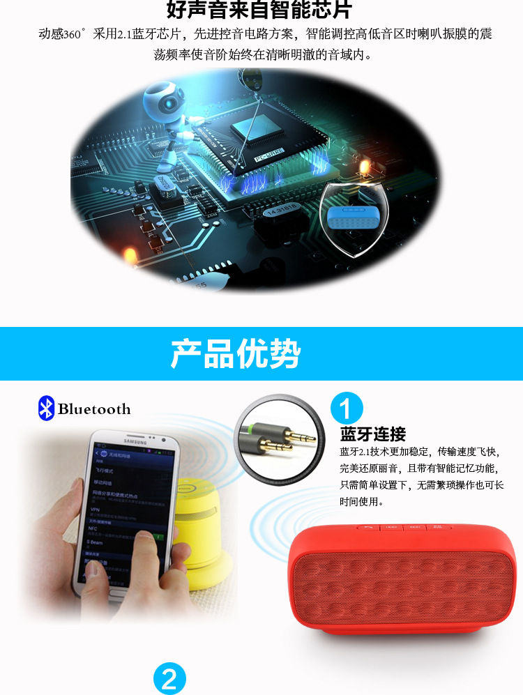 蓝牙音箱,无线连接手机、平板、笔记本电脑,实现无线音乐播放。