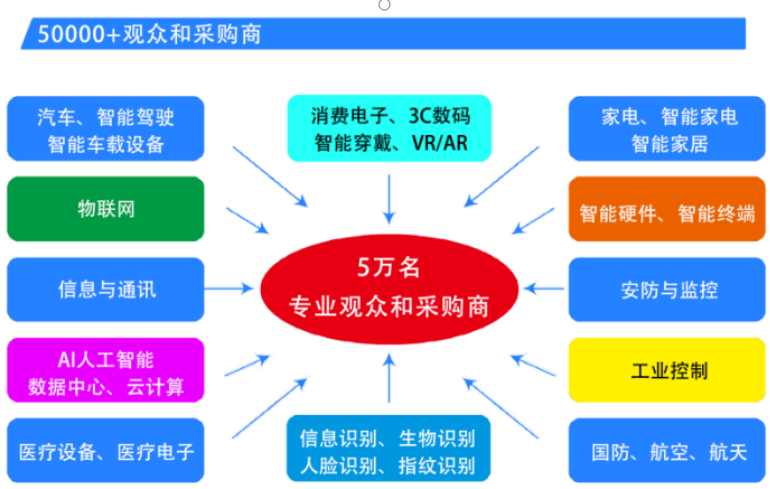 2、展会在中国电子信息产业基地——深圳举办,观众与采购商覆盖新能源汽车、消费电子、智能家电、智能家居、物联网(IoT)、通信、安防、医疗、工业、AI人工智能、云计算、金融、航通航天、军事等领域;