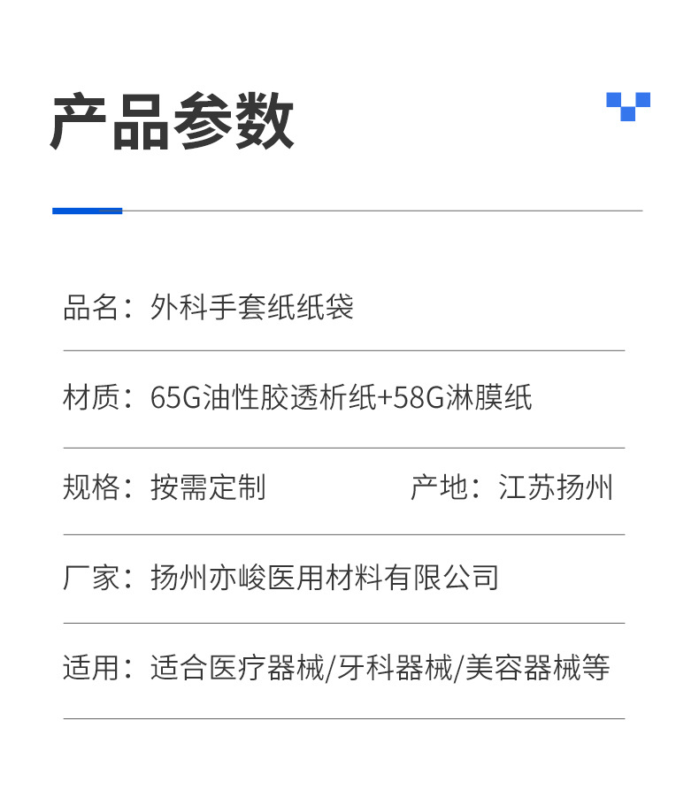 扬州亦峻医用材料有限公司发布的一次性医用外科手套包装纸纸袋定 制半透明自封口灭菌透析纸纸袋图集库