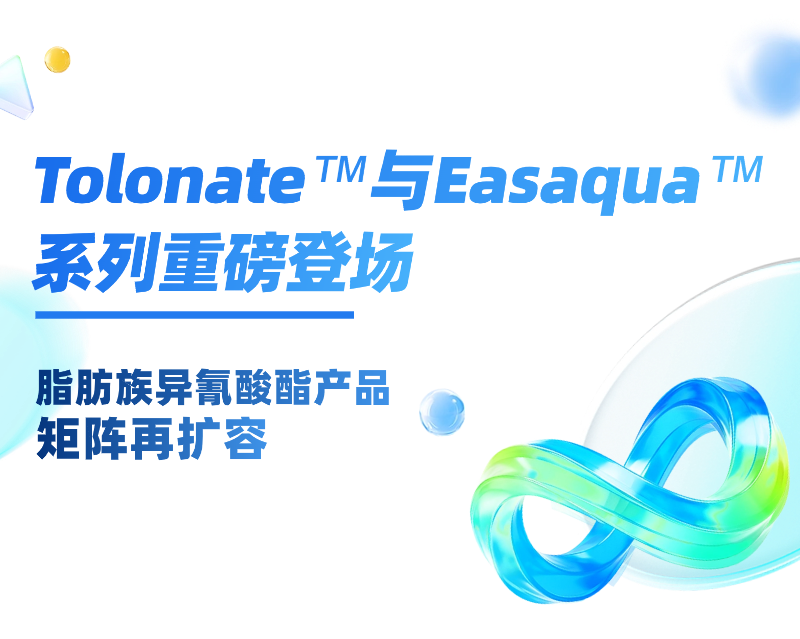此次产品矩阵的扩充,是万华化学在特种异氰酸酯领域布局的重要跨越,也标志着我们正持续深化在涂料、胶黏剂、密封剂及弹性体等关键领域的服务能力。依托Tolonate™与Easaqua™两大系列的产品组合,万华化学致力于为客户带来更丰富、更具价值的原材料选择,并以性能与环保兼顾的解决方案,助力合作伙伴提升产品竞争力,共创可持续发展的产业未来。