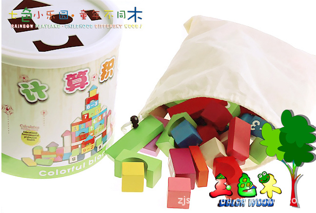 规格:(一套 100片印花积木 圆桶装 配收纳袋1个 ) 规格:12桶/件