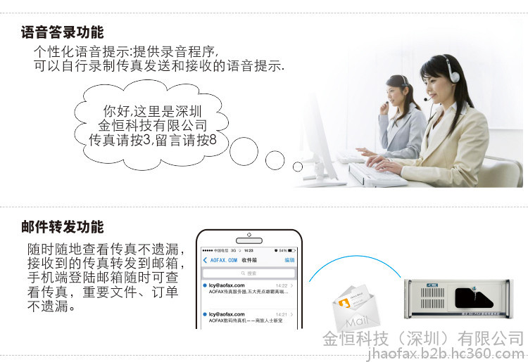 主营:传真服务器,传真系统,无纸传真机,呼叫中心系统,电话录音系统,电销系统