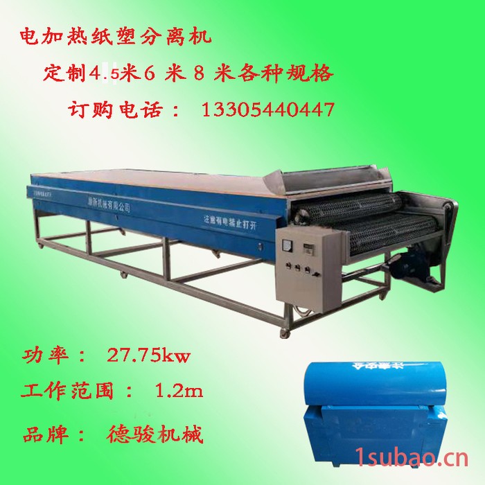 德骏设备厂的纸塑分离机是替代水力清洗及化学试剂分离方法的可以选择]设备。 此设备功耗小,分离效果好,用工少不仅适合工厂大规模加工同样适合家庭式工厂小批量生产。改进了加热体的布局方式,加热效率更高; 改进了传送方式,解决了纸袋中的杂质污染及纸袋着火的问题; 改进了加热体的设计,增加了加热体的寿命。 实践证明改进型的纸塑分离机分离效果更好;产量更高;更加易操作、易维护。