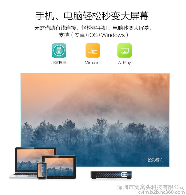 主营:微型智能投影仪,3d投影仪,商务投影仪,家族投影仪,教学投影