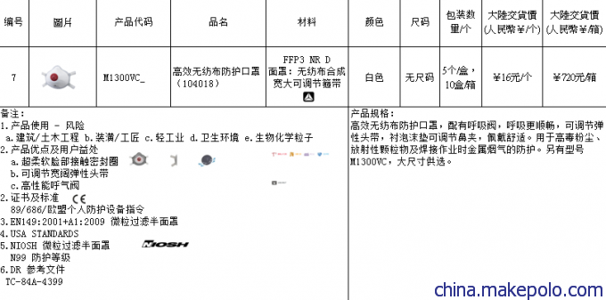 3.EN149:2001+A1:2009 微粒过滤半面罩