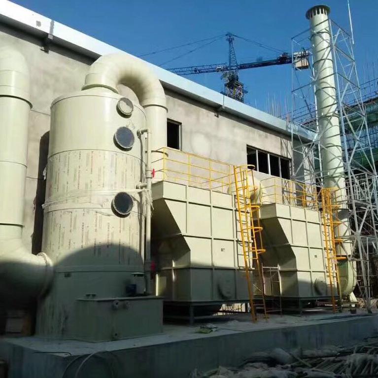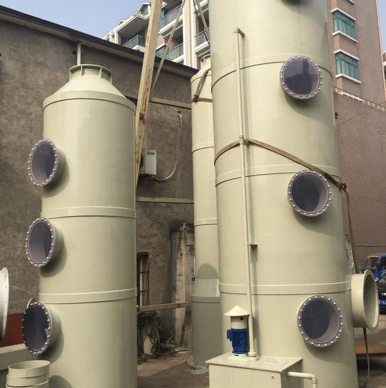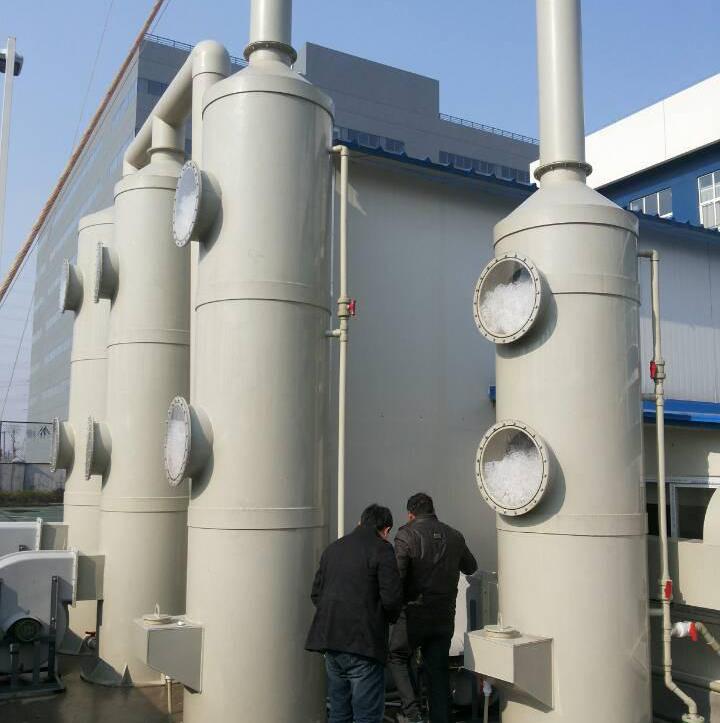 ◆废气净化塔系列: 杭州(绿然)环保设备有限公司系高科技环保企业,从环保项目的咨询、规划、设计、制作、施工调试到验收合格为一体的全程服务商。废气净化塔系列产品有:填料塔、洗涤塔、多功能填料塔、旋流板塔、筛板塔; ◆设备原理::对于腐蚀性气体(如酸、碱性废气)的治理,目前多采用液体吸收法治理。采用液体吸收法治理该废气,关键在于净化设备的选择。目前,我公司自主开发了净化效率高、操作管理简单、使用寿命长的酸、碱性废气净化工艺与设备。该工艺与产品具有结构简单、能耗低、净化效率高和适用范围广的特点,能去除气体(HCl)、氟化氢气体(HF)、氨气(NH3)、硫酸雾(H2SO4)、铬酸雾(CrO3)、氰氢酸气体(HCN)、碱蒸气(NaOH)、硫化氢气体(H2S)、(HCHO)等水溶性气体。酸雾废气由风管引入净化塔,经过填料层,废气与吸收液进液两相充分接触吸收中和反应,酸雾废气经过净化后,再经除雾板脱水除雾后由风机排入大气。吸收液在塔底经水泵增压后在塔顶喷淋而下,回流至塔底循环使用。净化后的酸雾废气达到排放标准。 ◆设备特点:本设备采用填料塔对废气进行净化,适合于连续和间歇排放废气的治理;工艺简单,管理、操作及维修相当方便简洁,不会对车间的生产造成任何影响;适用范围广,可同时净化多种污染物及含粉尘气体;塔体可根据实际情况采用FRP/PP等材料制作;填料采用、低阻的鲍尔环,可彻底地去除气体中的异味、有害物质等。 ◆结构形式:本设备分单塔体和双塔体。采用圆形塔体,用法兰分段联接而成。具体由贮液箱、塔体、进风段、喷淋层、填料层、旋流除雾层、出风锥帽、观检孔等组成。 ◆应用场合:本工艺和设备可广泛应用于化工、电子、冶金、电镀、纺织(化纤)、食品、机械制造等行业过程中排放的酸、碱性废气的净化处理。如调味食品、制酸、酸洗、电镀、电解、蓄电池等。 ◆ 技术特性: 压力损失<390—780Pa 适用温度<80℃(PP材质) 处理流量立式规格:φ500-φ2400mm 500m3/h-30000m3/h◆ DR型废气净化塔规格及技术指表: