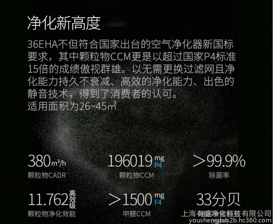 噪音: 33-59dB                                                         控制方式: 按键式                      智能类型: 其他     **大噪音: 59dB                                                       滤网类型: 无                             甲醛CCM值: F4(1500≤M)     空气净化能效等级: 高效级                                        货号: ACSQ36EHA                     颗粒物CADR值: 380立方米/小时