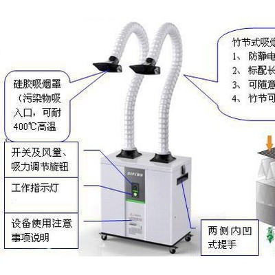 ◆机器配以万向吸烟臂,可随意变向、定位(长度可根据客户要求定制)。端部装以大口径集烟罩,造型独特,吸烟效率更高。