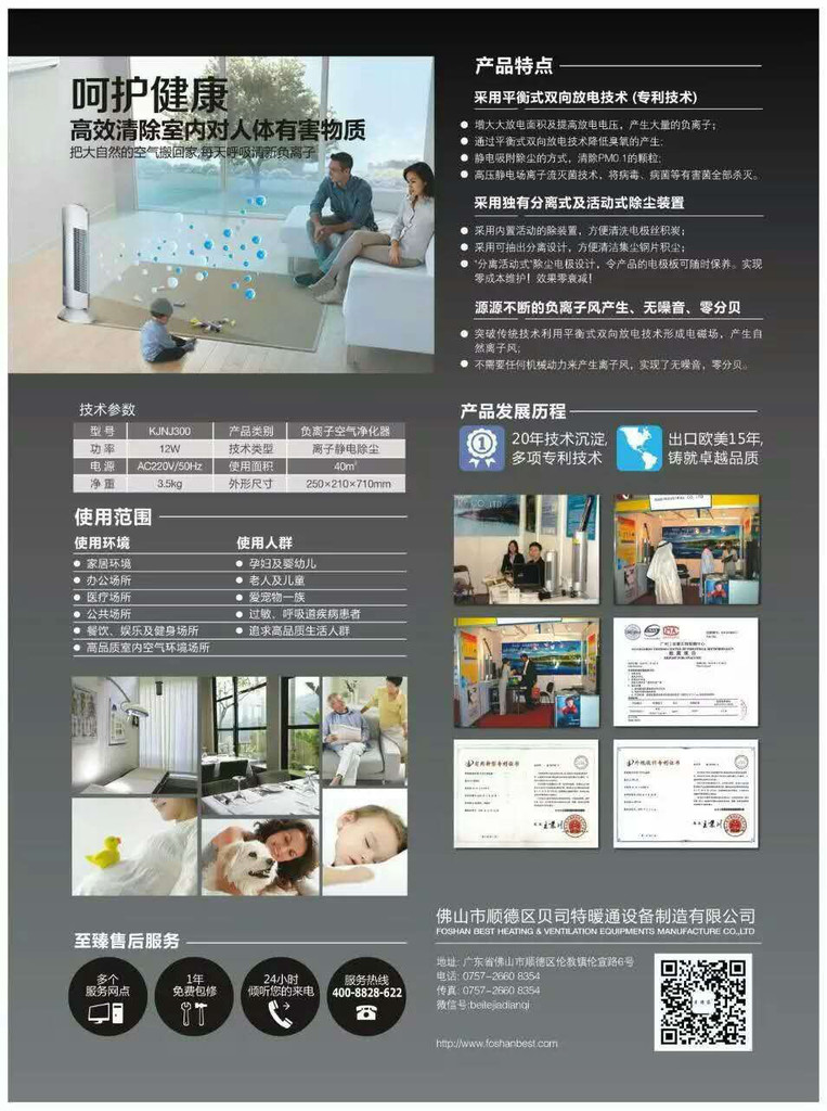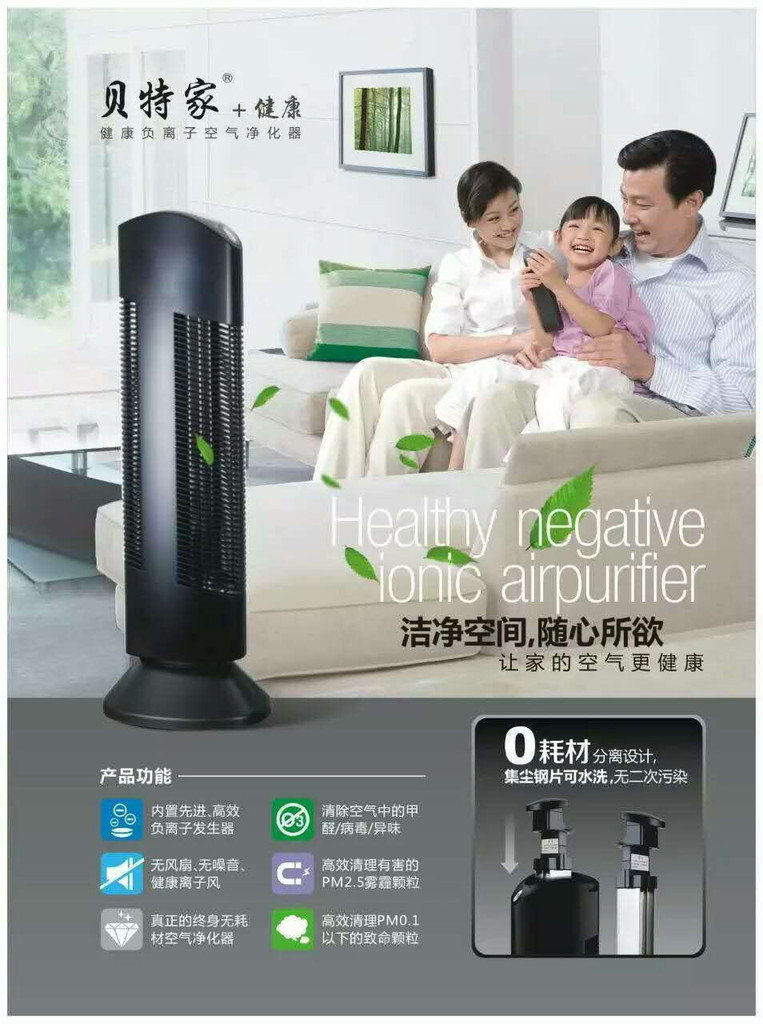 佛山贝司特暧通设备制造有限公司荣誉出品贝特家健康负离子空气净化器产品特点: