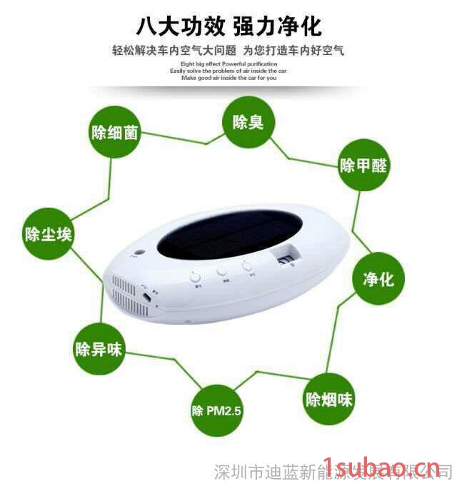 本公司供应空气净化器净车源jcy-Q8, “净车源”空气净化器,产品采用USB接口,移动方便,可家车双用,同时产品带高效太阳能充电,让车内更整洁、更节能。公司 可提供OEM及ODM定制服务。 迪蓝太阳能车载净化器,质量保证,欢迎咨询洽谈。
