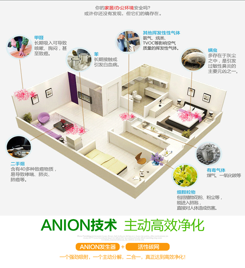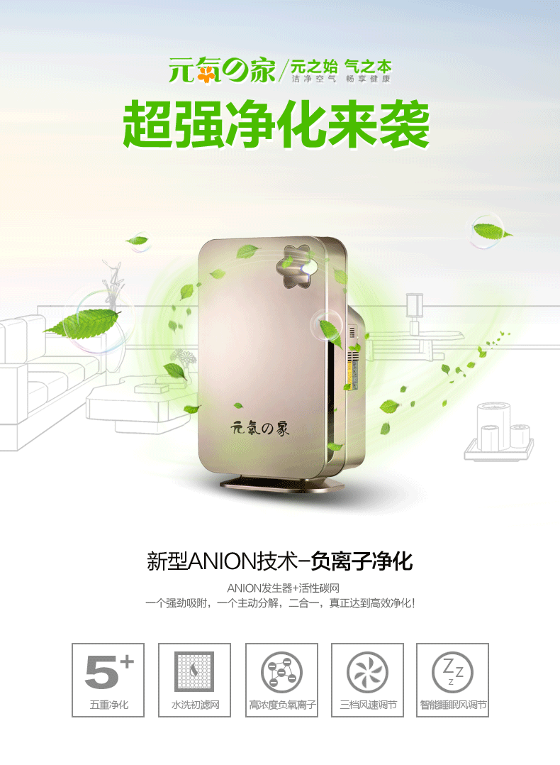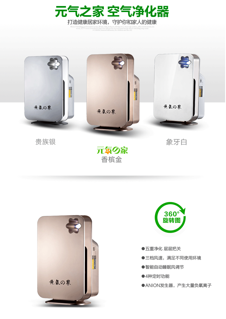 负离子空气净化器家用 多功能大面积除病菌 甲醛PM2.5 烟尘 雾霾