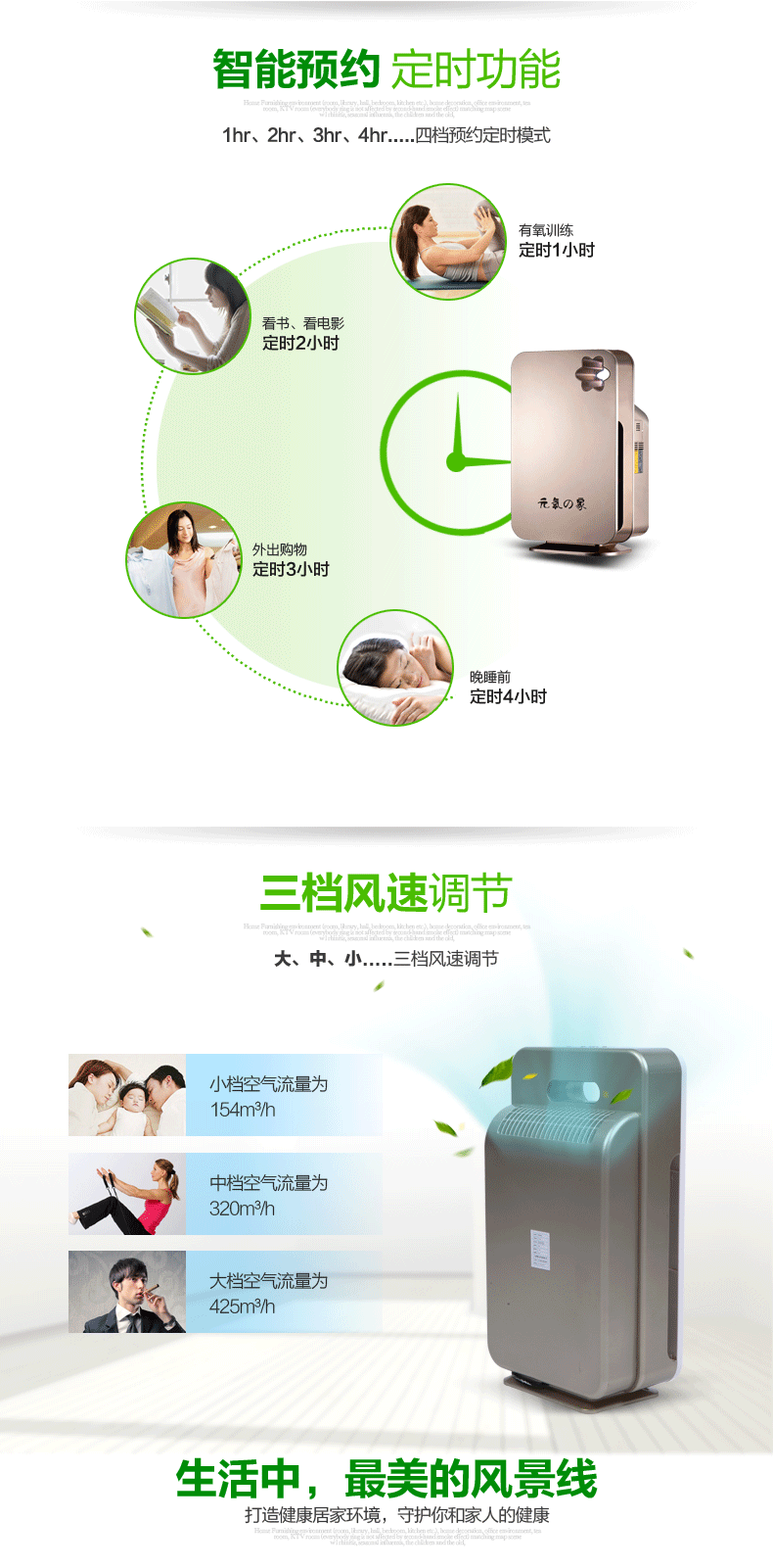 功能: 除花粉 定时 除甲醛 除烟除尘 杀菌