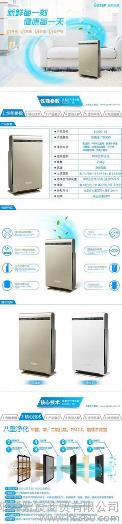 本公司供应空气净化器,品牌国真,型号KJ220-ZB。参数为:适用面积* 60平方米以内,外形尺寸(mm)* 330*180*505,净化率 99.99/%,噪声 55/dB,输入功率 58/W,电源电压 220V/W。质量保证,欢迎咨询洽.