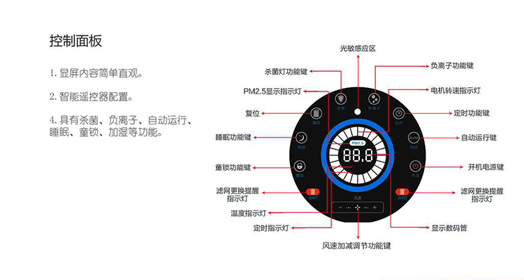 用途 | 除甲醛,香薰,杀菌,净化空气,加氧,加湿,负离子,除烟除尘 |