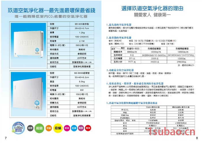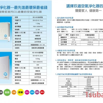 5、节能、环保、时尚玖道空气净化器9D-9000功率为8W,24小时开机一个月电费仅6元,无需任何耗材,美观、大方、雅致、精巧,可放置在办公室的任何地方而不占用空间。
