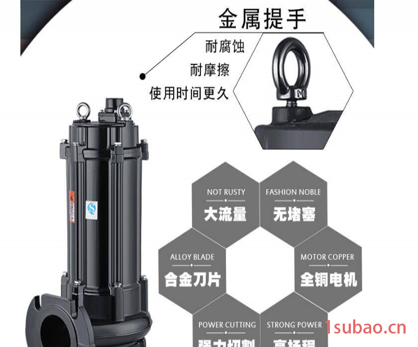 WQK带切割装置排污泵电泵采用高质量的硬质合金,双端面机械密封和骨架油封组合的动密结构,为了电泵的正常运行及工作人员的安全,用户应配务电动机的漏电保护器,在长时间内工作,本泵电机允许露出液面部位,不得超过电动机高度的l/2,抽送污物温度不超过40℃。WQK带切割装置排污泵它具有排污通过能力特别强,带切割性能好,能将污水中的长纤维、塑料、纸、带、布条、稻草、绳子等杂质切碎后排出。