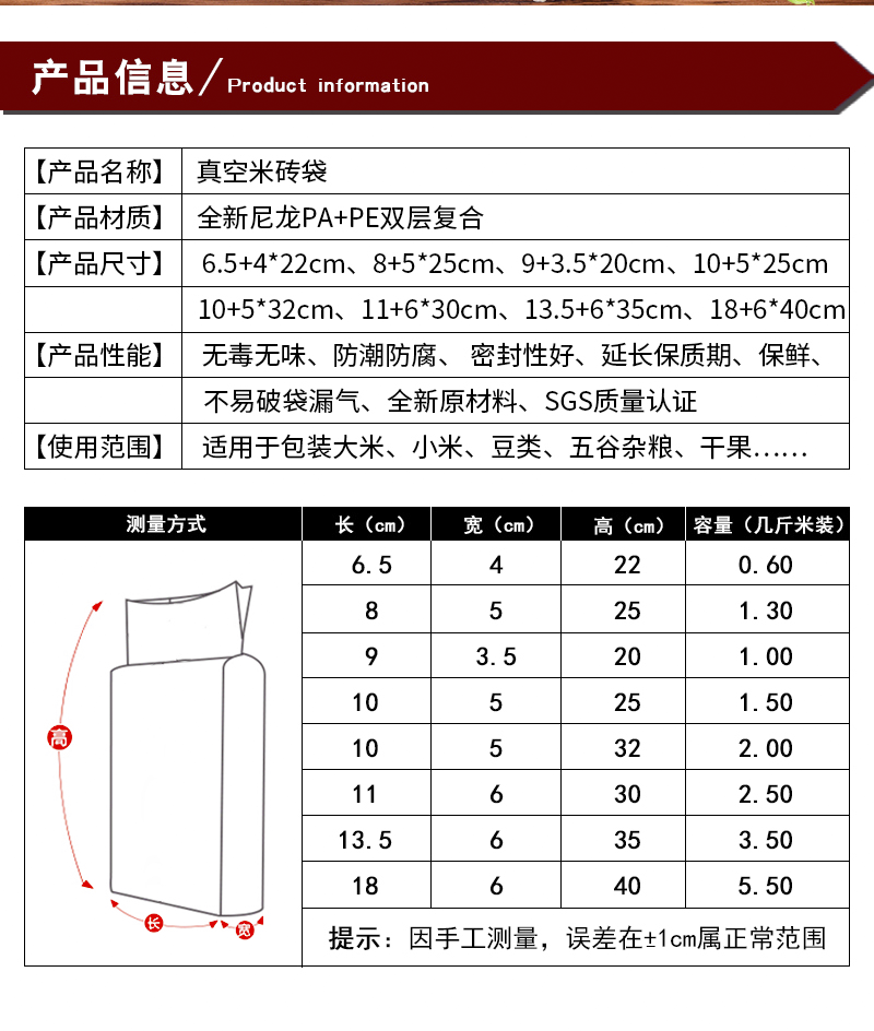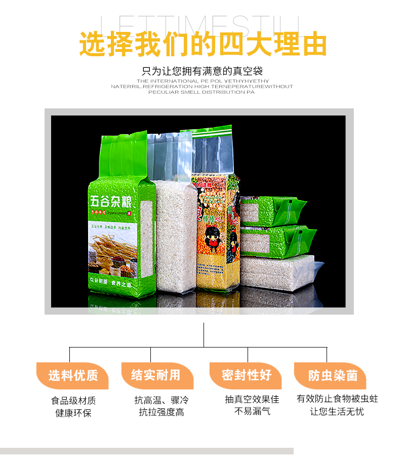 1. 特级真空包装袋,选用材料经过QS认证符合食品标准,做工精细,封口边缘平整,厚度一致,透明度高,每批真空袋出厂经过车间技术部门的严格检验后出厂。