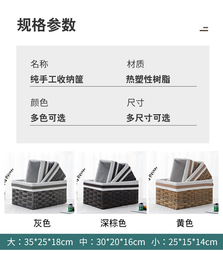 本网页所展示的有关【编织PE收纳筐家用钥匙篮水果置物箱藤编桌面杂物收纳盒日式收纳_收纳盒_曹县雨天木业有限公司】的信息/图片/参数等由简塑制品网的会员【曹县雨天木业有限公司】提供,由简塑制品网会员【曹县雨天木业有限公司】自行对信息/图片/参数等的真实性、准确性和合法性负责,本平台(本网站)仅提供展示服务,请谨慎交易,因交易而产生的法律关系及法律纠纷由您自行协商解决,本平台(本网站)对此不承担任何责任。您在本网页可以浏览【编织PE收纳筐家用钥匙篮水果置物箱藤编桌面杂物收纳盒日式收纳_收纳盒_曹县雨天木业有限公司】有关的信息/图片/价格等及提供【编织PE收纳筐家用钥匙篮水果置物箱藤编桌面杂物收纳盒日式收纳_收纳盒_曹县雨天木业有限公司】的商家公司简介、联系方式等信息。