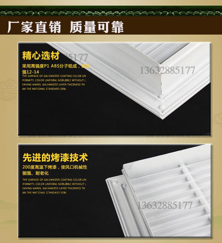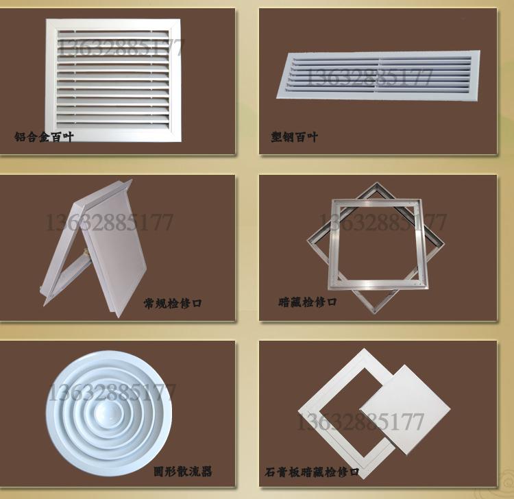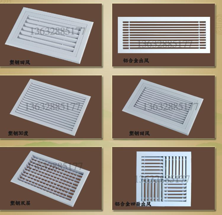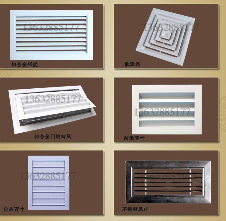 风口主要为ABS塑钢、铝合金风口、不锈钢百叶、木质风口.