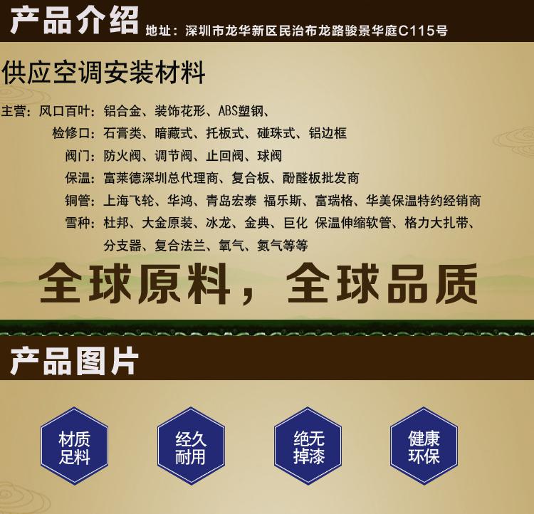 深圳市鹏丰玥空调配件有限公司,是一家专业设计、研发、生产、销售的五金专业生产厂家,主营业务类别;风机系列、风口系例(材质;铝合金、塑钢.不锈钢.柚木.艺术花形)阀门系例(类别;风量、止回、防火、排烟)消声器系例、检修口系例、外气口系例等产品。企业的综合实力不断提高,并很快发展成为集研究、开发、销售为一体的现代化企业。以品质和价位的优势 “鹏丰”牌产品从国内走向了国外,远销世界各地。