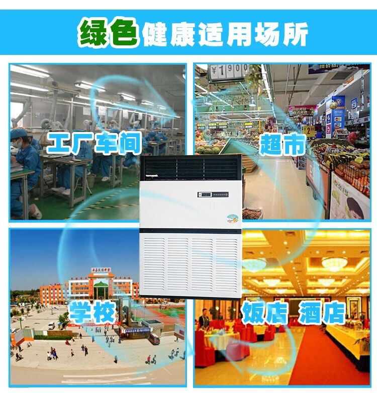 大型水空调柜机,冷暖两用,智能遥控,车间,厂房,办公楼,餐厅,饭店等公共场所使用。